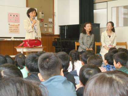 「あいさつをする」「ひとにめいわくをかけない」の約束を聞きました。放課後まなびの先生方と2年生から6年生の子どもたちを合わせると119人です。