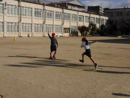 テンポよく跳ぶことや両足で安定した着地をすること等をめあてに、「とびあそび」の学習をしています。