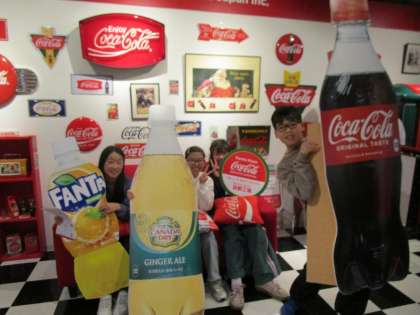 コカ・コーラ京都工場では、コカ・コーラ誕生の秘密を映像やパネルで学んだり、実際に製造工程を見たりしました。自動販売機やお店で目にすることが多い飲み物の裏側を知ることが出来て興味深かったですね。