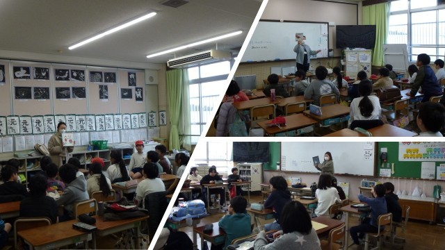 今日は、4年生と6年2組の子どもたちが絵本の世界を楽しみました。