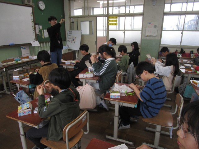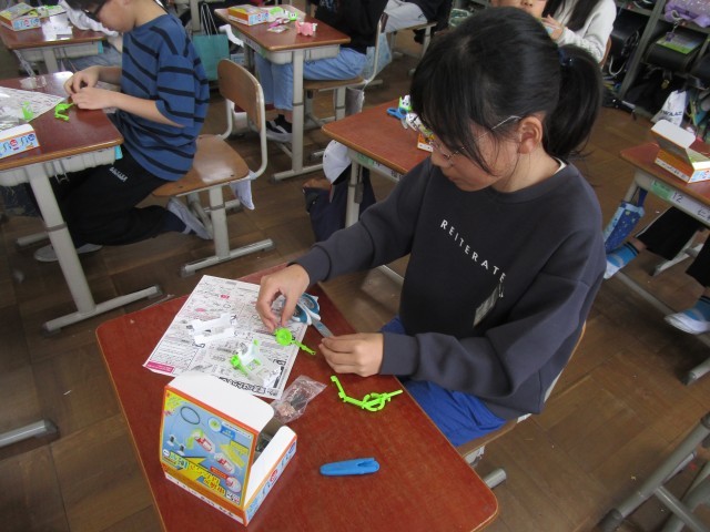 理科では、今日から「電流と電磁石」の学習がスタートしました。まずは、導線からのコイル作りです。絡まる導線に悪戦苦闘しながら、みんな一生懸命頑張りました。来週から、今日作成したコイルを使って学習を進めます。授業がとても楽しみです。