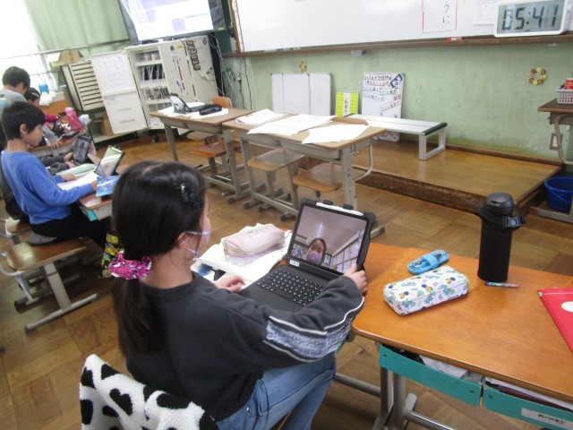 国語科「お気に入りの場所、教えます」では、発表練習の様子を動画に撮影。見返してよりよい発表になるよう、何度も撮影と練習を繰り返していきました。