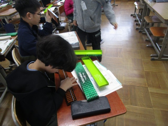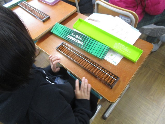 算数科では「そろばん」の学習をしています。そろばんの使い方を学び、簡単な計算をしていきました。習い事でそろばんをしている子どもたちが、大活躍していました。