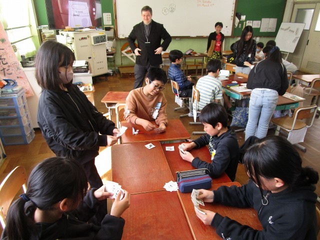 今年度最後のALTとの英語の授業でした。カードを使ったゲームや反応の速さを試すゲームをして楽しみました。様々なアクティビティを紹介してくれたALTのおかげで楽しく活動することができました。