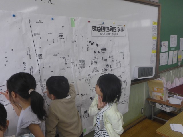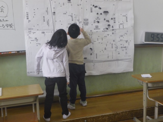 2年生では、生活科「まちをたんけん 大はっけん」 を始めました。まずは、自分たちの町について、知っている場所や好きな場所をみんなで出し合いました。これから、自分たちの町をより詳しく、大好きになっていってほしいと思います。