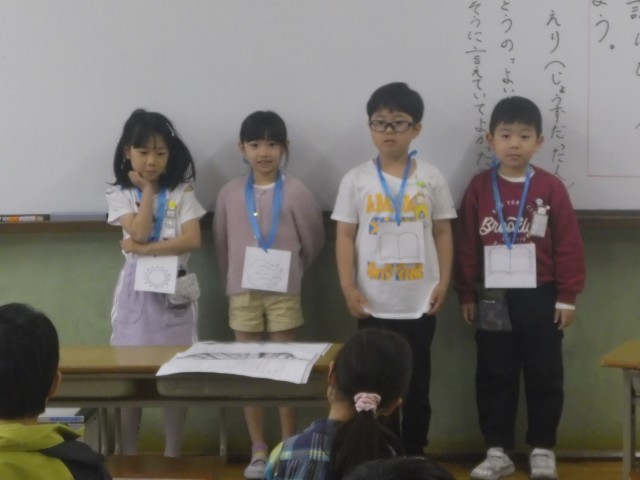 2年生では、国語科「ふきのとう」の学習をしています。学習の終わりに、音読発表会をしました。登場人物の気持ちを考え、「声の大きさ」「声の速さ」を変えながら音読することができました。