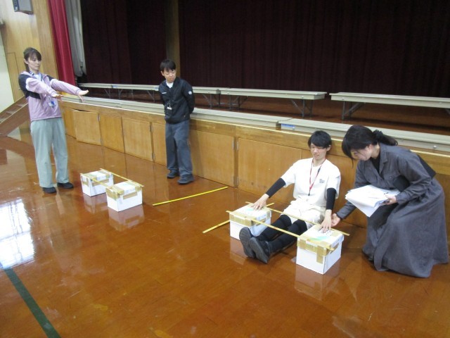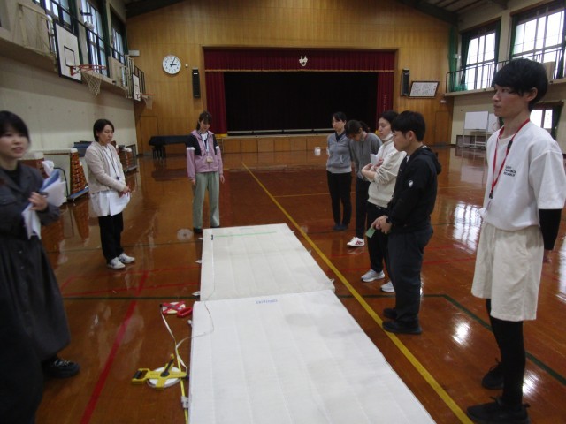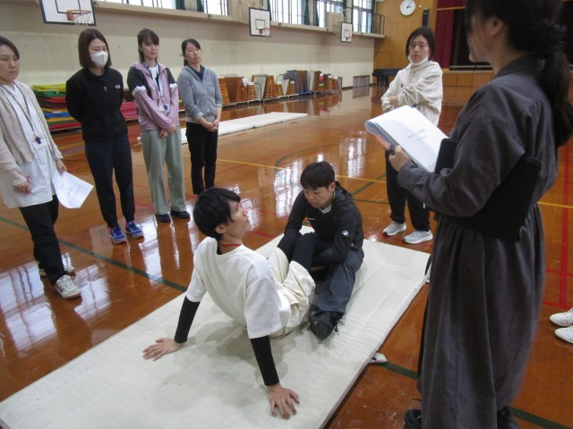 新体力テストに向けて、教職員で研修会を行いました。実際にやりながら、実施の方法や留意点などを確かめました。