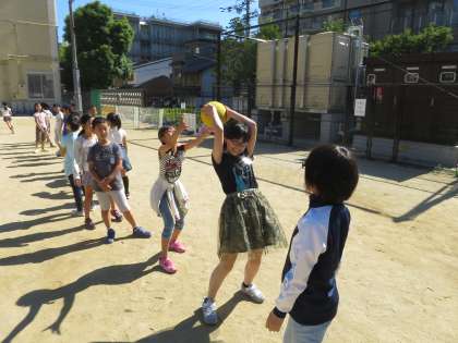 4年生 ボール送り競争