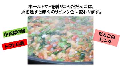 【もぐもぐ】 今日の給食は 公開日 2017/06/21 更新日 2017/06/21 給食 ごはん・牛乳・きつね丼(具)・トマトだご汁です。 「だご汁」は九州地方でよく食べられているもので,「だご」とは「だんご」のことです。 給食ではトマトを使っただんごを作り,夏においしいトマトをたっぷり入れ,色鮮やかなだご汁にしました。 トマトの酸味がさわやかな一品です。