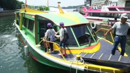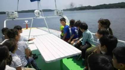 賢島に到着した子どもたちは,あご湾を船で「なかよし港」へ。