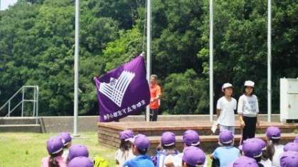 「みさきの家」に初めて下京雅小学校の校旗が上がることに喜びを感じながら,校歌を歌いました。なかよし港にきれいな歌声を響かせると,「素敵な校歌ですね」と所長さんからほめていただきました。