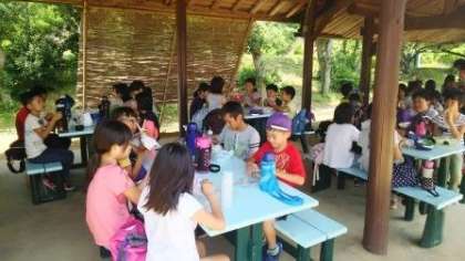 船の中から「お腹がすいた」と言っていた子どもたちは,笑顔でお弁当をいただきました。
