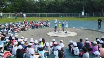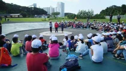 朝のつどいの集合は10分前行動ができました。朝から汗ばむお天気で快晴です。