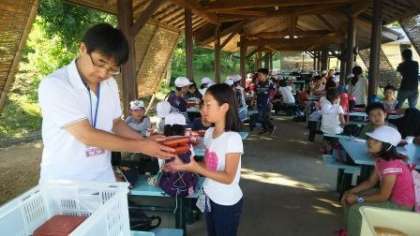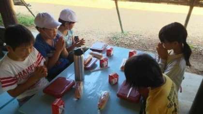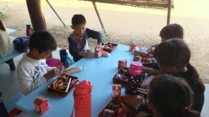 食事係を中心に班ごとに食事の準備をして,「いただきます」のあいさつをしました。