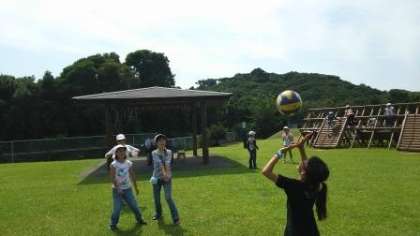 サッカーをして走り回ったり,バレーボールを楽しんだりできました。