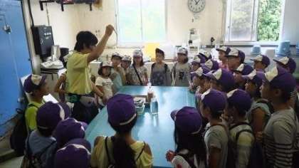 水族館のバックヤードを見学させていただきました。餌を準備するところでは,飼育する魚の種類によって,餌となるアジをそのままやったり,小さく切ったり,3枚におろしたりしていると教えてもらいました。知らないことがたくさんあり,真剣に話を聞いていました。