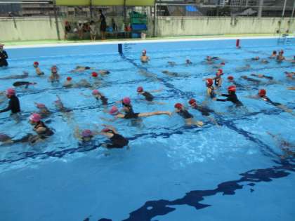そうしているうちに,水にも慣れ,顔をつけたり浮いたりすることができるようになってきました。