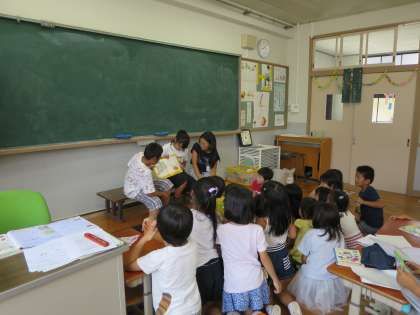 「風の時間」に,図書委員のお兄さん,お姉さんに読み聞かせをしてもらいました。