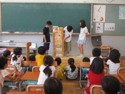 図書委員さんが一生懸命読んでくれたので,1年生も真剣に聴いていました。