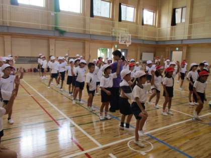運動会に向けて1・2年生で,リズムダンスをしました。