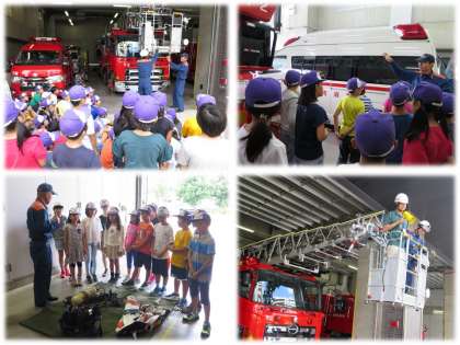 社会科の学習「火事をふせぐ」にかかわって,下京消防署の見学をさせていただきました。消防車の説明や訓練の様子,火災が発生したときの体制など,たくさんのことを学ばせていただきました。下京消防署のみなさんには,お忙しい中お世話になりました。