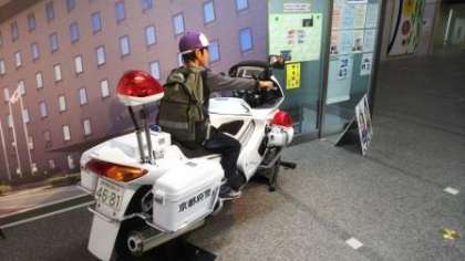施設内の広報センターでは,白バイに乗ったり,110番通報の体験をしました。初めて乗る白バイに興奮している様子の子どもたちです。
