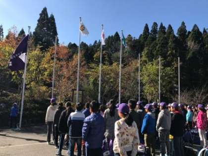 入所式では,花背山の家に下京雅小学校の校歌を響かせました。