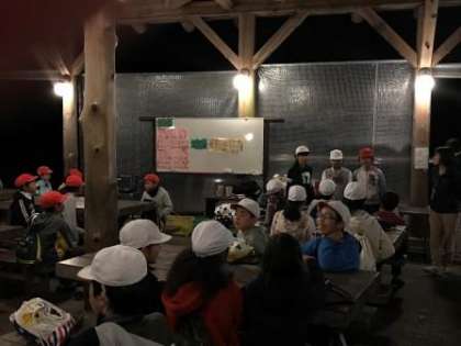 ランタンを照らしながら,夜のハイキングを楽しみました。途中,暗くて怖がる友達もいたようですが,みんなでまとまってグループ行動ができていました。
