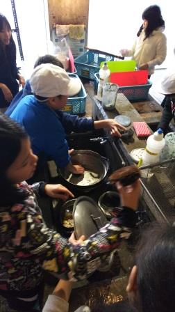 昼食のカレーライスをおいしくいただいたあとは,片付けです。