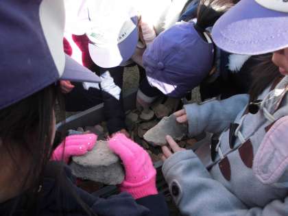 3・4年生 発掘調査見学 公開日 2018/02/13 更新日 2018/02/13 学校の様子 元醒泉小学校の,埋蔵文化財発掘調査の見学をしました。 担当の方から,弥生時代の住居や川などの跡であることを聞きました。2500年も前に,ここで生活している人がいたことに,子どもたちは驚いていました。 その後,発掘された石包丁を見たり,土器を触ったりしました。 弥生時代だけでなく,平安,鎌倉,江戸時代などの跡もあり,時の流れを肌で感じることのできる時間となりました。