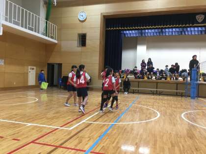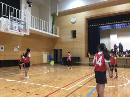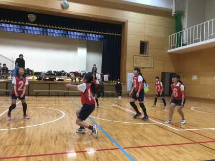 部活動バレーボールの下京・東山支部交流会が下京渉成小学校で行われました。本校からも1チーム7名の児童が出場し,1試合目は西大路小学校と,2試合目は下京渉成小学校と対戦しました。子どもたちは日頃の練習の成果をしっかり出し切り,見事リーグ優勝を果たしました。