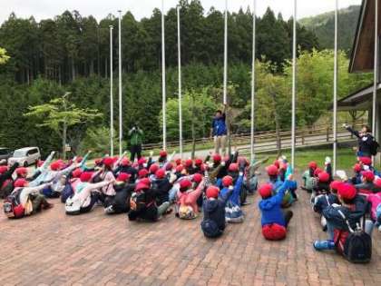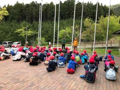 引率していただく花背山の家の先生のお話を聞き,気合いを入れて出発します。