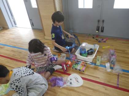 たくさんのカラフルなビニールが体育館にふわふわ舞う風景は,とてもすてきでした。