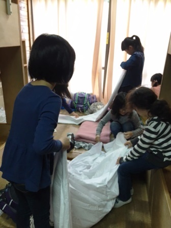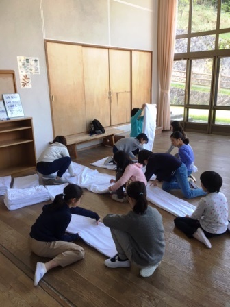みんなで協力してシーツや布団をたたんだり,ゴミを拾ったりして隅々までキレイに掃除できました。