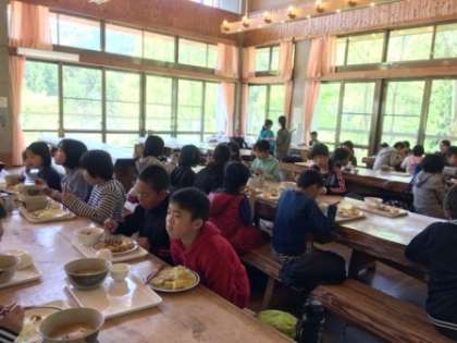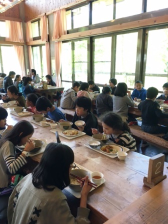 5年 花背山の家 最後の食事 公開日 2018/05/11 更新日 2018/05/11 学校の様子 花背山の家でいただく最後の食事になりました。 メインに塩ラーメンか,とりてり丼を選んで,最後のバイキングを楽しんでいます。バイキングでは,カレーコロッケが人気です。