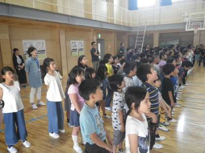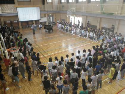 「フレンドタイム」は全校児童が体育館に集まって行う音楽集会です。
