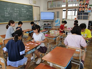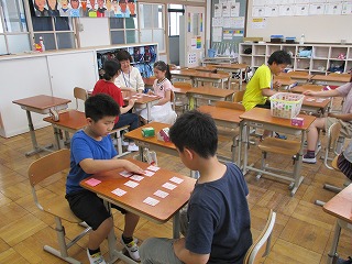 その後,今日は百人一首をしました。ルールや札の覚え方を教えてもらい,いろいろな人との対戦を楽しみ,盛り上がりました。