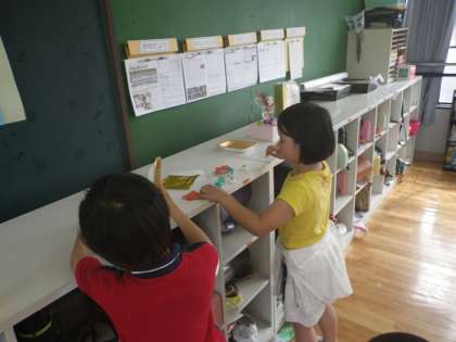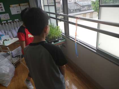「いつもの場所で」の単元で,普段使う教室を飾り付け,交流しました。ロッカーの上や手すりに飾り付けをし,いつもの場所が少しだけ特別な場所になりました。
