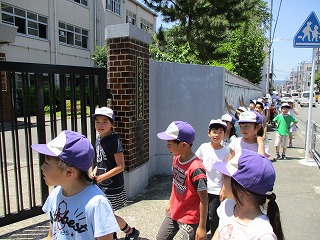 生活科「大すきいっぱい わたしのまち」で,今日は第1回校区探検に行きました。初日は,学校より西の方面を歩きました。