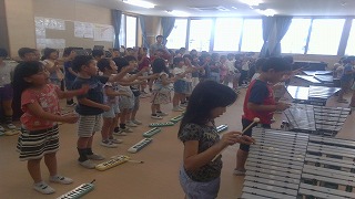 25日(月)は,音楽室での最後の練習でした。「笑顔で楽しく歌おう! 心を合わせて演奏しよう!」というのがこの日のめあてでした。