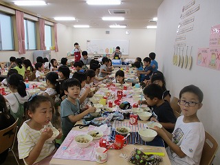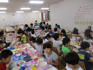 2年生みんなでランチルームで食べたよ!