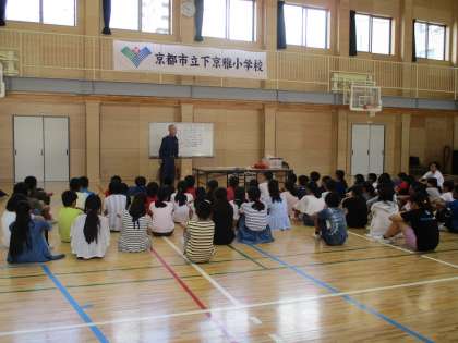京都市消防局の方に来ていただき,大切な命を救うために,気道確保と胸骨圧迫の方法やAEDの使い方などを教えていただきました。救急車が来るまでに,どんな事ができるのか,一つ一つ確認しながら行動する姿がありました。