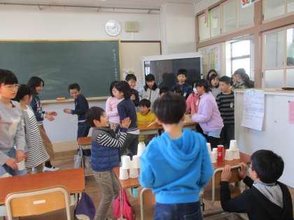 ミヤビーランド,大成功! 公開日 2018/12/12 更新日 2018/12/12 学校の様子 たてわりグループごとに相談して遊びを考え,今日,全校で遊び合いました。体育館と教室に遊びのコーナーをつくり,ミヤビーランドのスタートです! グループで協力する姿,高学年が低学年に優しく声をかける姿,低学年が高学年を慕って楽しむ姿・・・と,笑顔あふれるミヤビーランドになりました。 グループで力を合わせ,企画をやり遂げることができました。楽しい時間に大満足の子どもたちです。