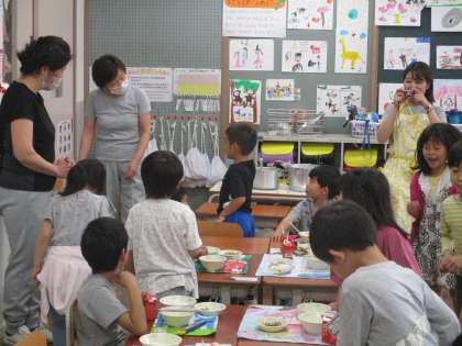 いつもおいしそうに給食を食べている1年生ですが,今日は,ふと疑問に思ったことがあったようです。それは…