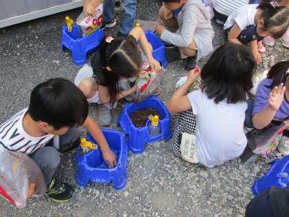子どもたちは,大きく元気に育ってきれいなお花を咲かせてほしいという気持ちでいっぱいです。明日から毎日お水をあげると,張り切っています!きれいな花が咲くといいですね。