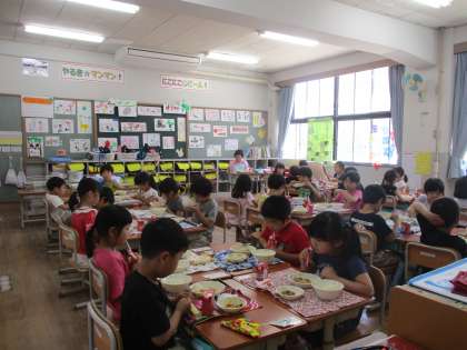 ちくわはうま味を出してくれて,大豆やこんぶには骨や歯を強くするカルシウムやおなかをすっきりさせる食物繊維がたっぷり含まれています。このことを知った子どもたちは…