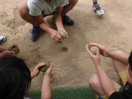 朝から3年生が外遊びで泥だんごを作ることに夢中でした。