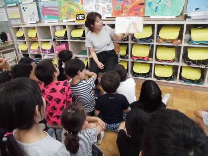 1年生は,担任とは違う先生に読み聞かせをしてもらいました。