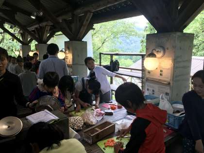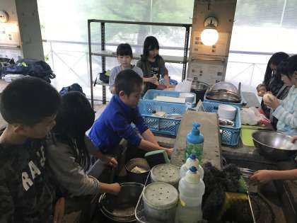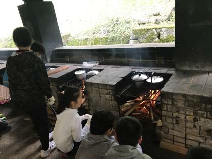 5年 花背山の家 その7 公開日 2019/06/10 更新日 2019/06/10 学校の様子 野外炊事で班ごとにカレーとご飯を炊きます。かまど係,お米係,野菜係に分かれて協力しながら作っていきます。