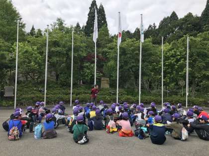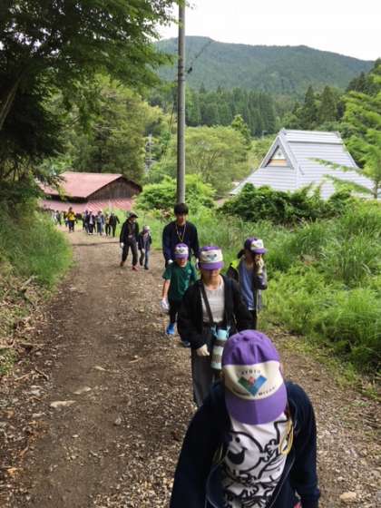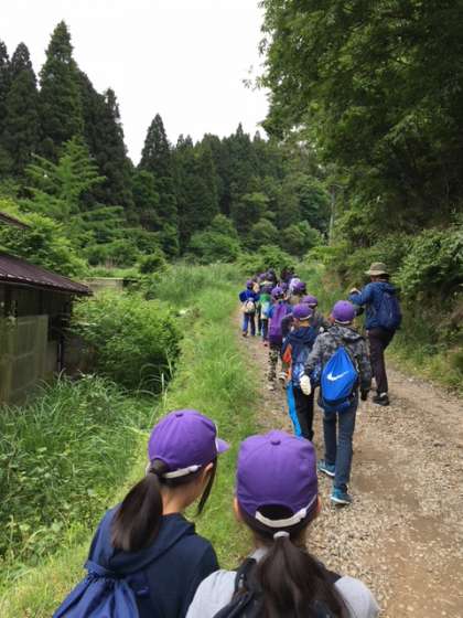 暑すぎず寒すぎず絶好の登山日和になりました。天狗杉に登るにあたっての諸注意を一緒に登ってくださる山の家の方からお話を聞いて,登山を始めます。